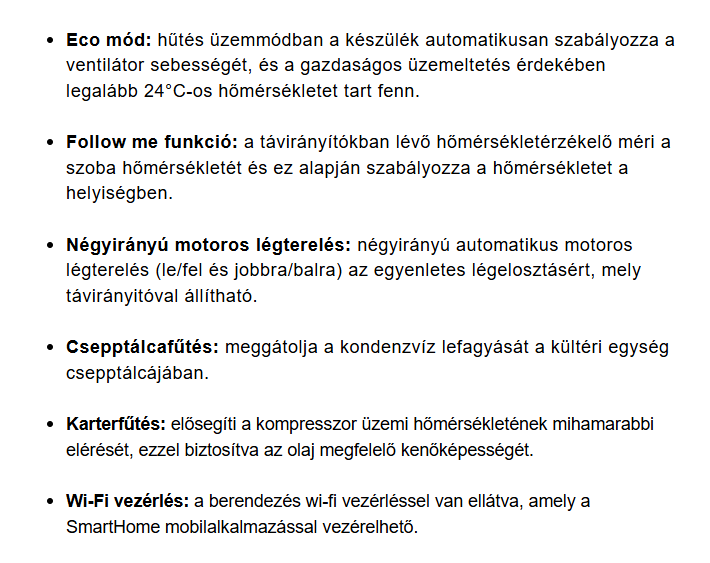 • Kivitel : Oldalfali inverteres klíma